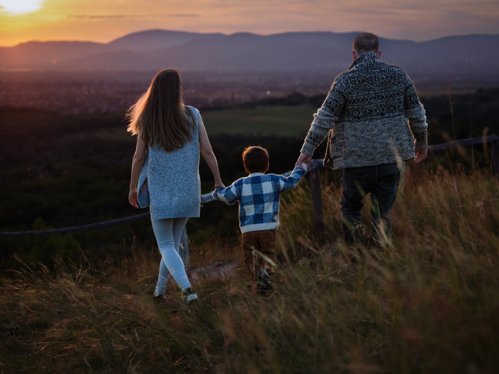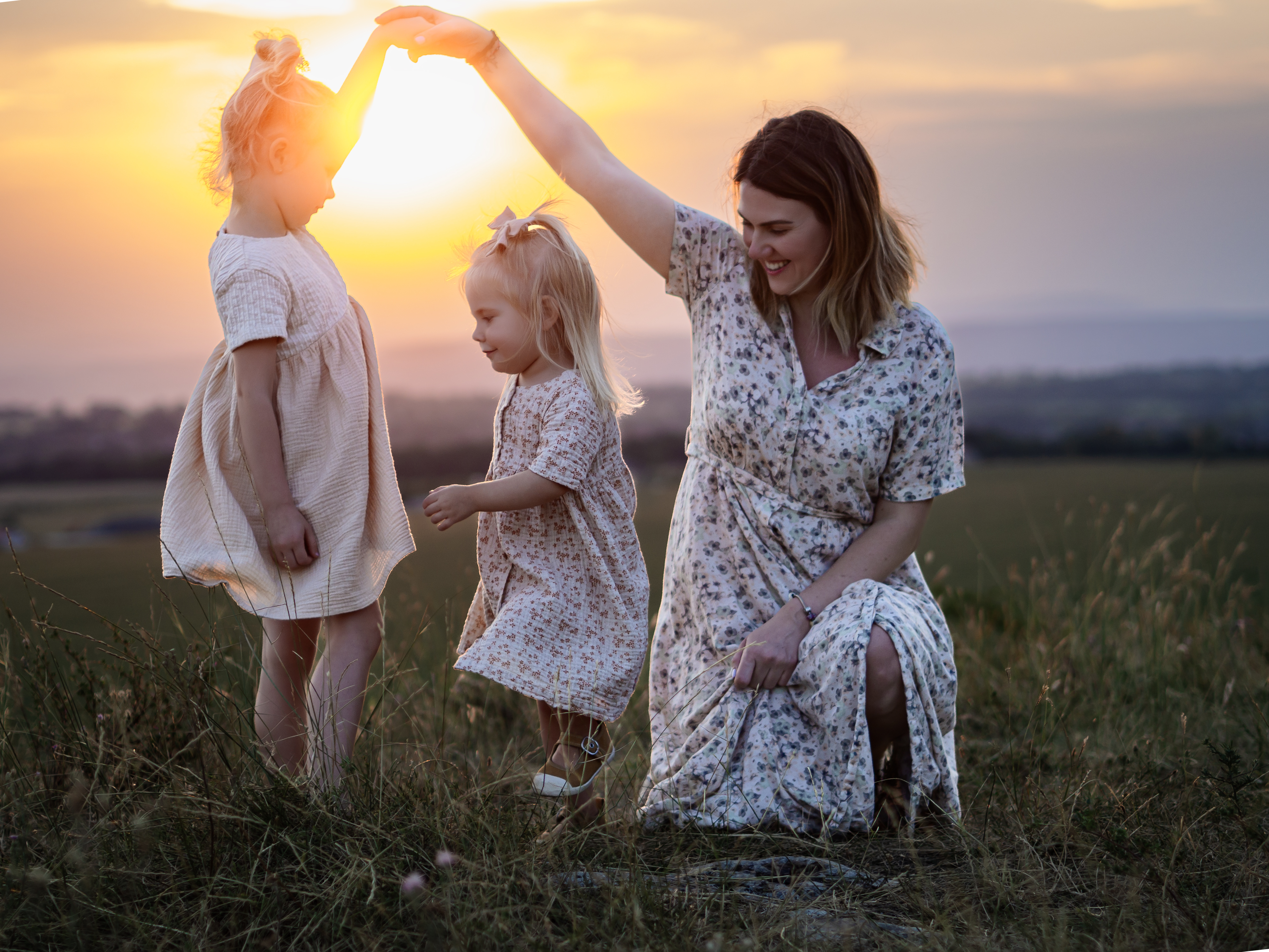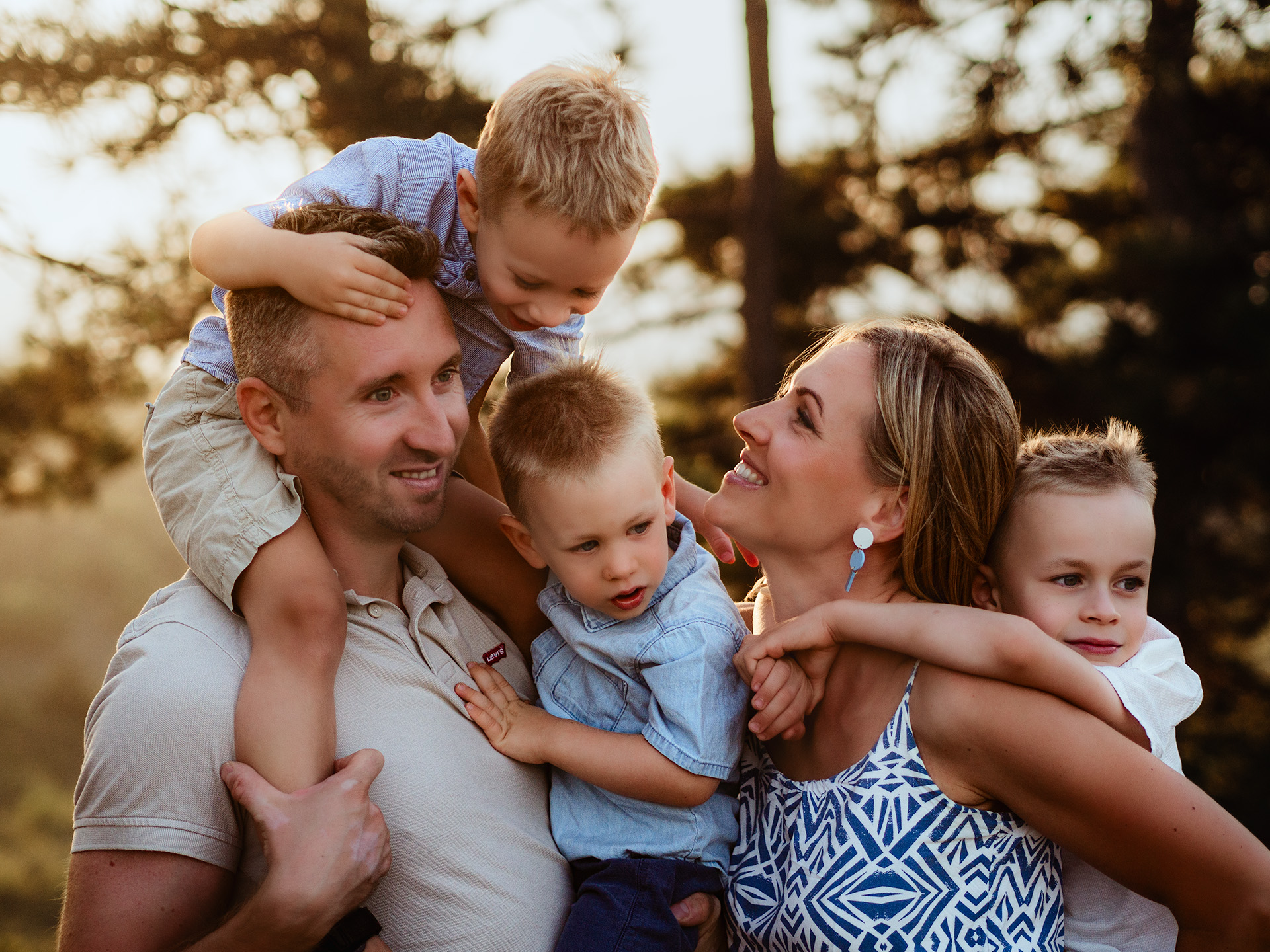 Szabadtéri lifetyle családi fotózás természetes fényben, gyerkeres családokkal.